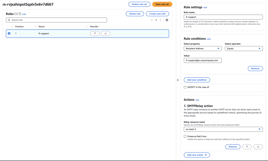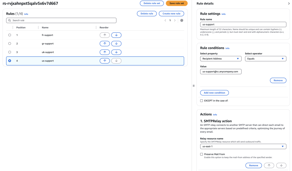 Step 3: Create a rule set which has set of rules to route the emails to respective region-based email recipient.