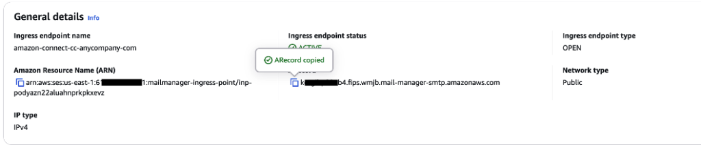 - For emails to be routed to Amazon Connect instance in us-east-1 region, the email should be routed to Amazon SES receiving endpoint “inbound-smtp.us-east-1.amazonaws.com”