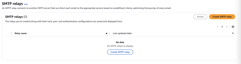 - Navigate to Amazon SES console page, Mail manager, SMTP relay