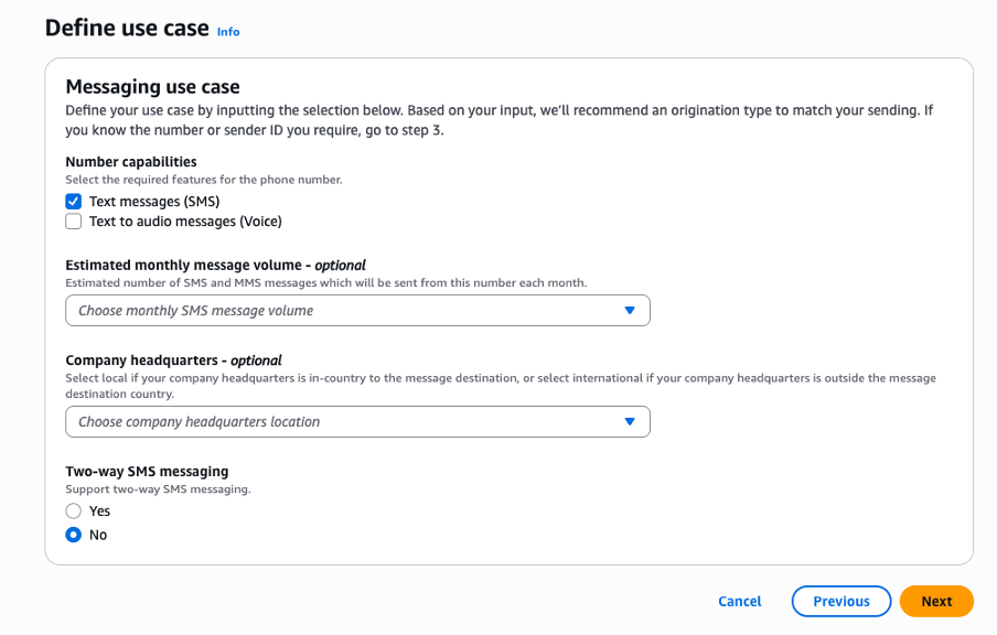 6. Check into ‘Text Messages (SMS)’ under ‘Messaging Use Case’