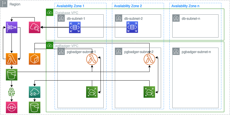 In a previous post, we demonstrated how to use infrastructure services to run pgBadger on Amazon Elastic Compute Cloud (Amazon EC2). In this post, we update the approach to run the analysis using a serverless stack. Akin to Performance Insights and Amazon DevOps Guru for RDS, this solution enables DevOps professionals to get enhanced insights into their database query performance without having to secure and patch compute instances or pay for underutilized resources. Serverless technologies feature automatic scaling, built-in high availability, and a pay-for-use billing to increase agility and optimize costs.