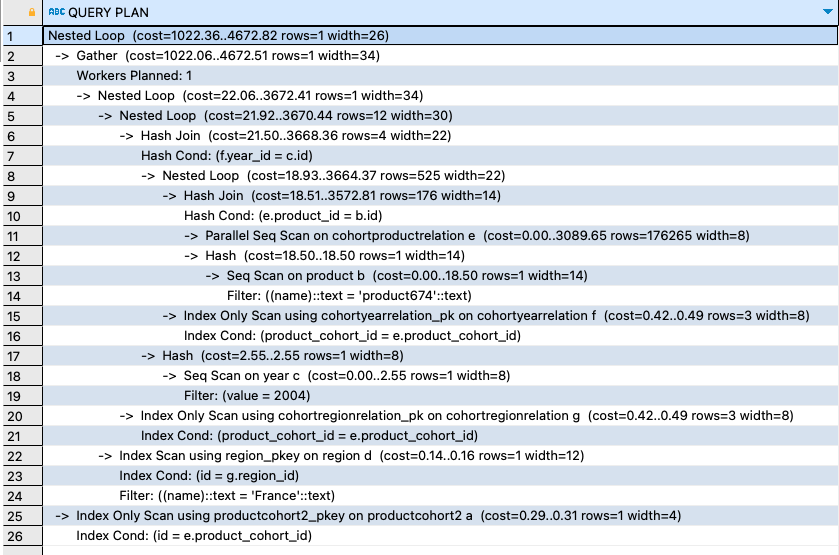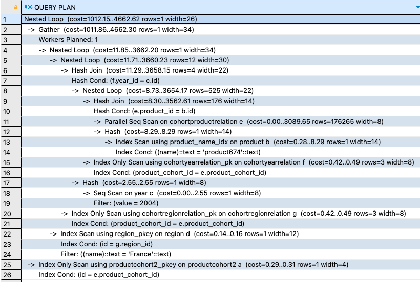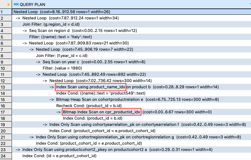 We review the execution plan and find that only two indexes product_name_idx and cpr_productid_idx are used. Therefore, we drop four other unused indexes.