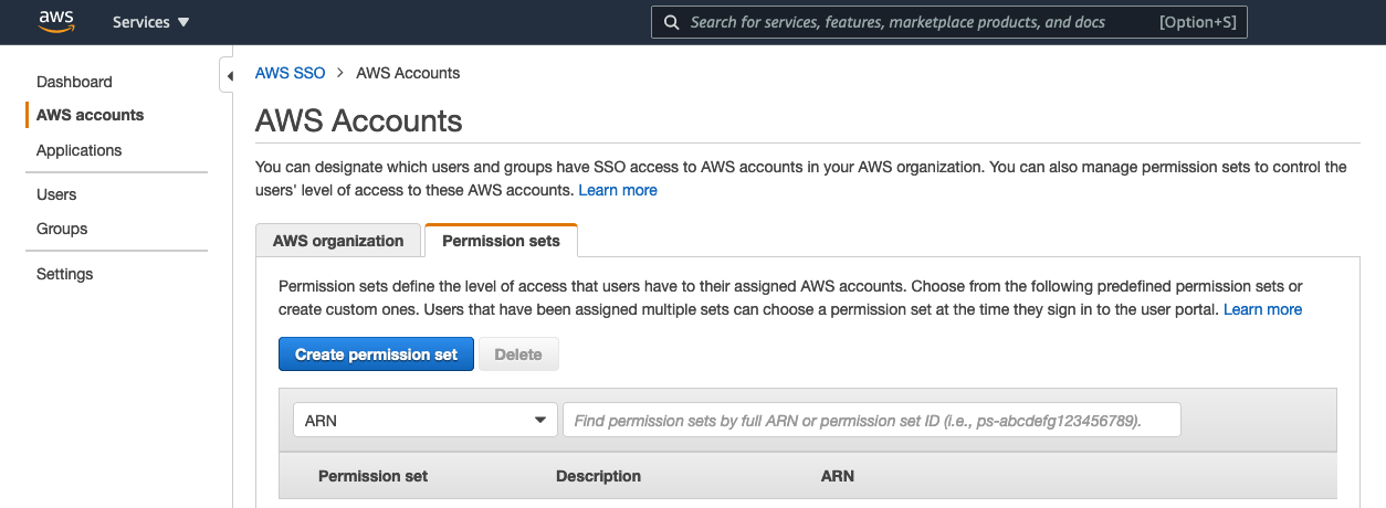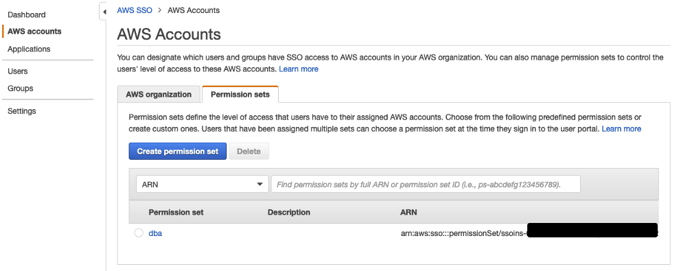 The following screenshot shows our new permission set on the AWS SSO console.