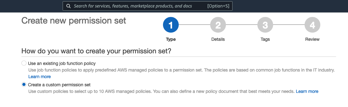 - Select Create a custom permission set.