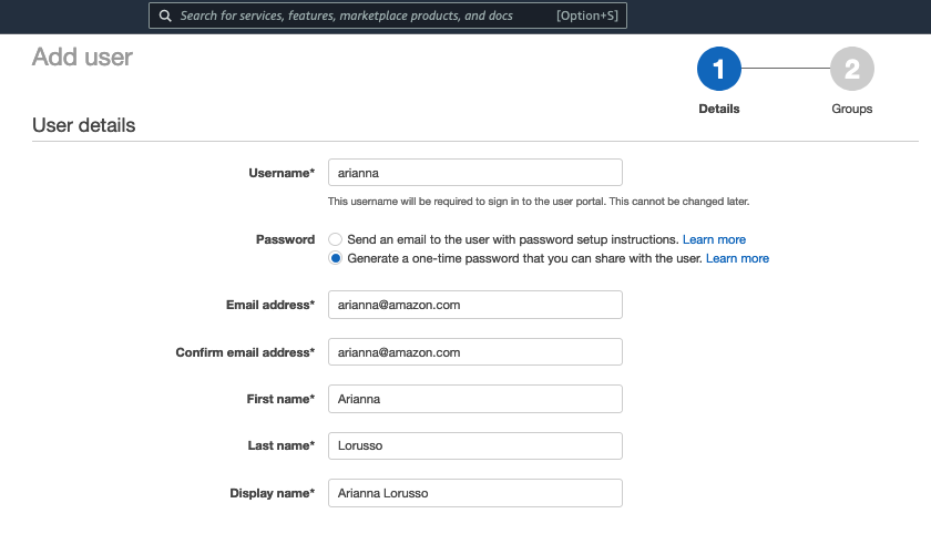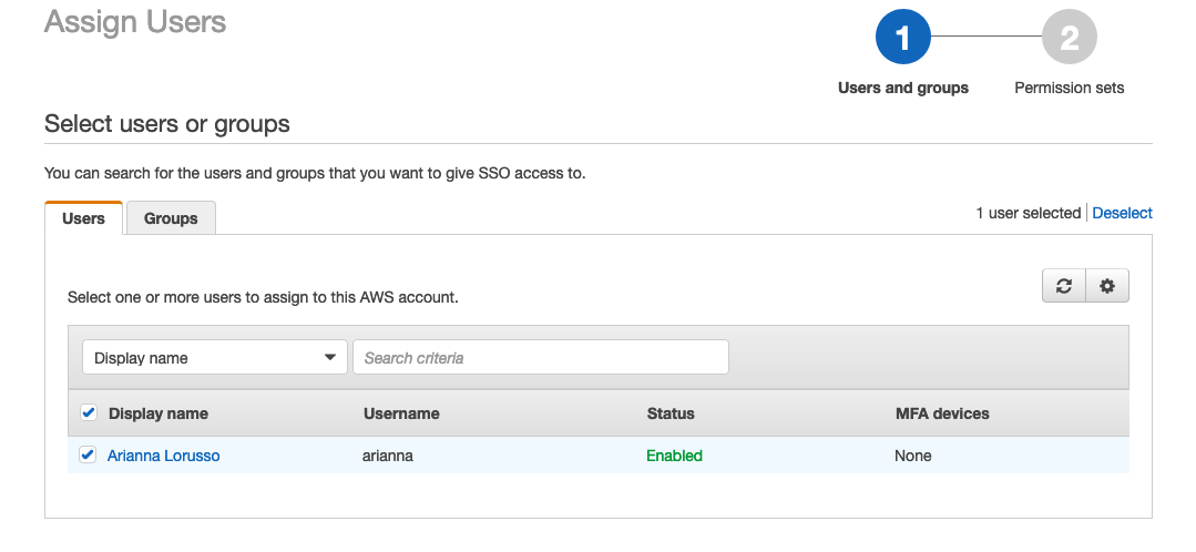 - Create the AWS SSO user.