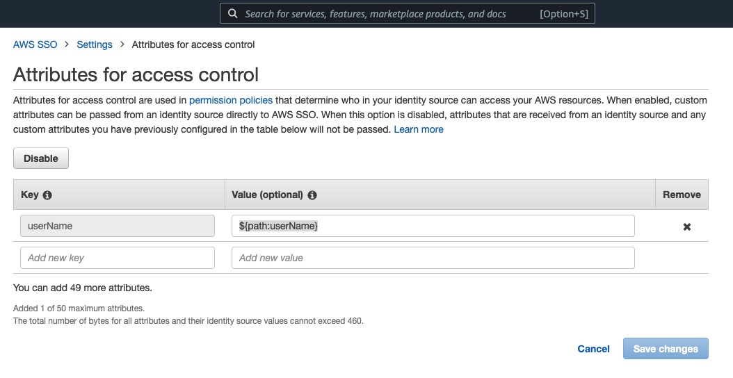 You need to configure the mapping of the AWS SSO user’s tags to pass through the SAML assertion. In this case, we need to configure the userName attribute of the AWS SSO user because we need it to be checked against the database user.