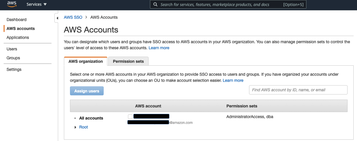 - On the AWS SSO console, choose AWS accounts in the navigation pane.