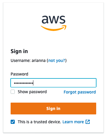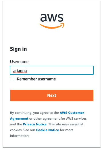 - Perform the authentication via AWS SSO as described earlier when you configured your IdP integration with IAM.
