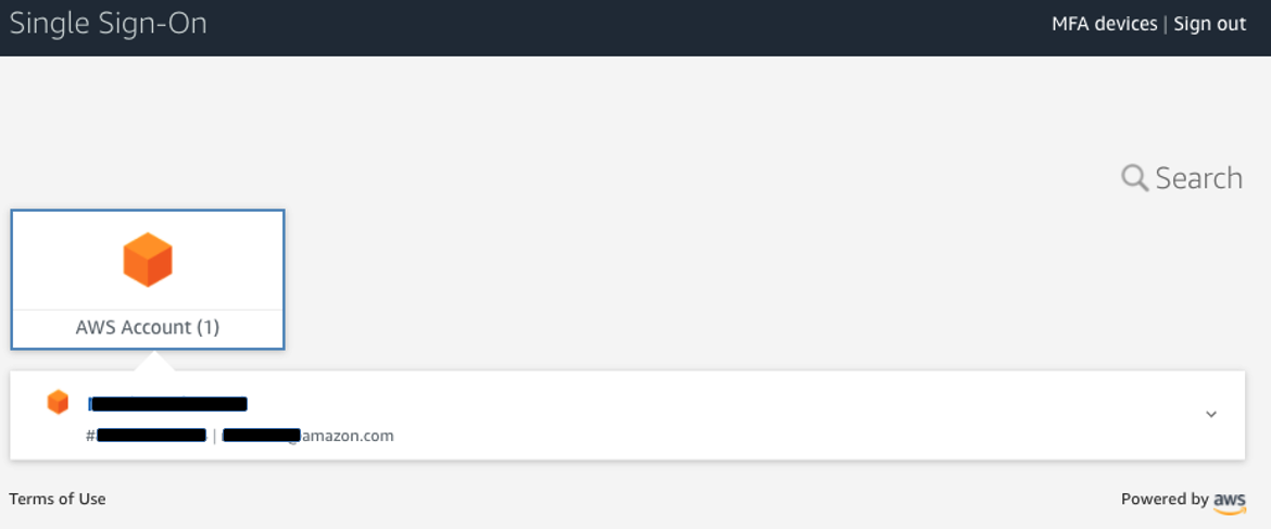 After you sign in, you’re prompted with the list of AWS accounts and related permission sets that are associated to your AWS SSO user.