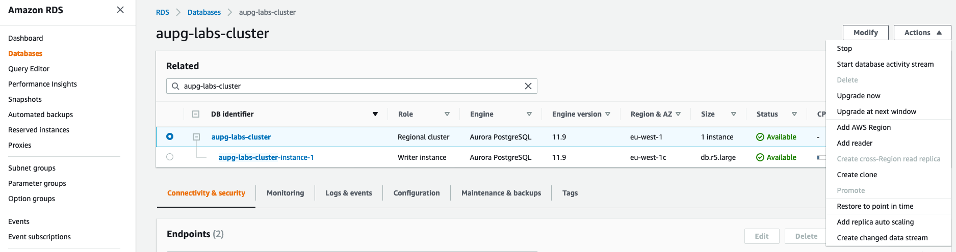 You start an activity stream at the database cluster level to monitor database activity for all database instances of the cluster. Any database instances added to the cluster are automatically monitored. Make sure you meet any prerequisites before getting started.