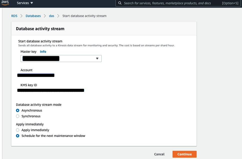 Configure a database activity stream