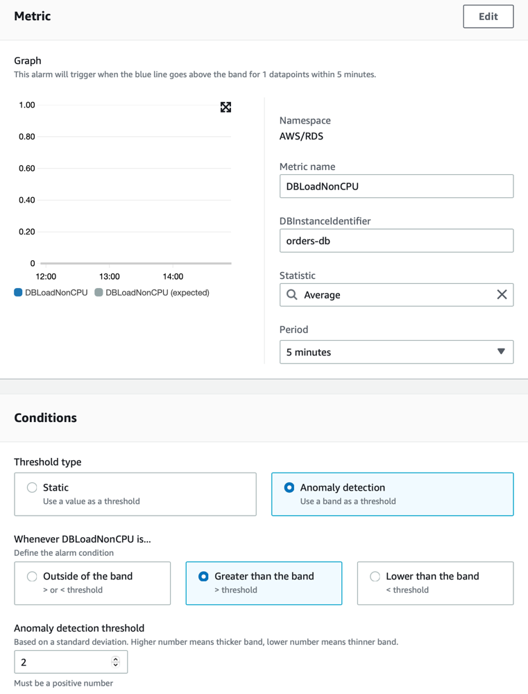 Instead of reading the wait events from Performance Insights, you can import the Performance Insights counters to CloudWatch and read it from CloudWatch if more metrics are used. We also suggest adding a CloudWatch alert that tracks anomalies in the DBLoadNonCPU metric value. We observed a correlation in anomalies in DBLoadNonCPU values before an increase of LWLock:buffer_content events. We also observed false positives that alarmed with no growth in buffer_content locks. We mitigated those by increasing the metric measurement period.
