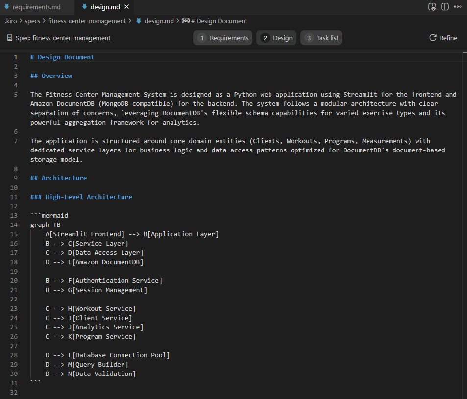 We began with a simple conversation with Kiro about the fitness center management idea.