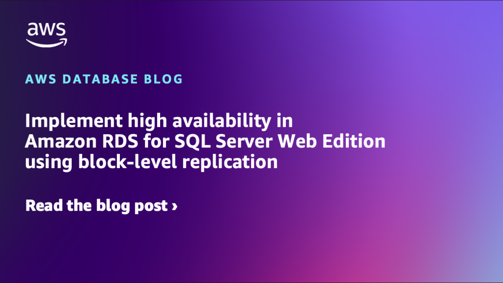 Amazon RDS for SQL Server has enhanced SQL Server 2022 Web Edition by introducing high availability through block-level replication in Multi-AZ deployments. With this release, you can quickly set up and maintain highly available databases while significantly reducing operational overhead. In this post, we discuss the benefits of block-level replication and how to get started. For more information, see Licensing Microsoft SQL Server on Amazon RDS.