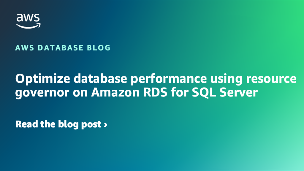 You can now use resource governor with Amazon RDS for SQL Server Enterprise Edition to optimize your database performance by controlling how compute resources are allocated across different workloads. This post shows you how to optimize your database performance using resource governor on Amazon RDS for SQL Server. We walk you through the step-by-step process of enabling and configuring the feature, including how to set up resource pools, create workload groups, and implement classifier functions for effective resource management.