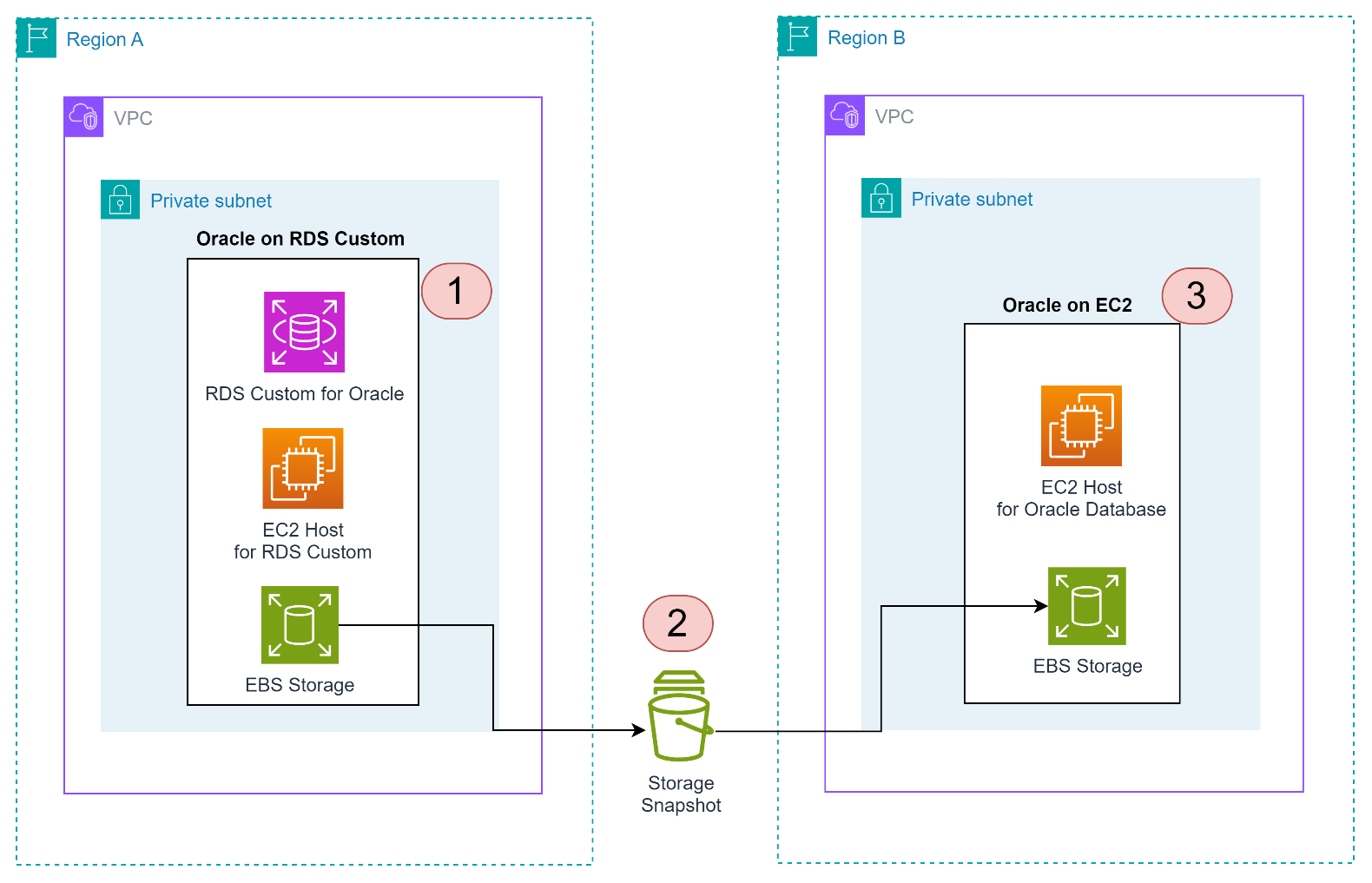 Consider a large Oracle database (typically 1 TB or more) running on Amazon RDS Custom in the Canada (Central) ca-central-1 AWS Region. To set up a disaster recovery instance in Canada West (Calgary) ca-west-1, you need to migrate the database to an EC2 instance because Amazon RDS Custom for Oracle isn’t available in Canada West (Calgary) ca-west-1 as of this writing.