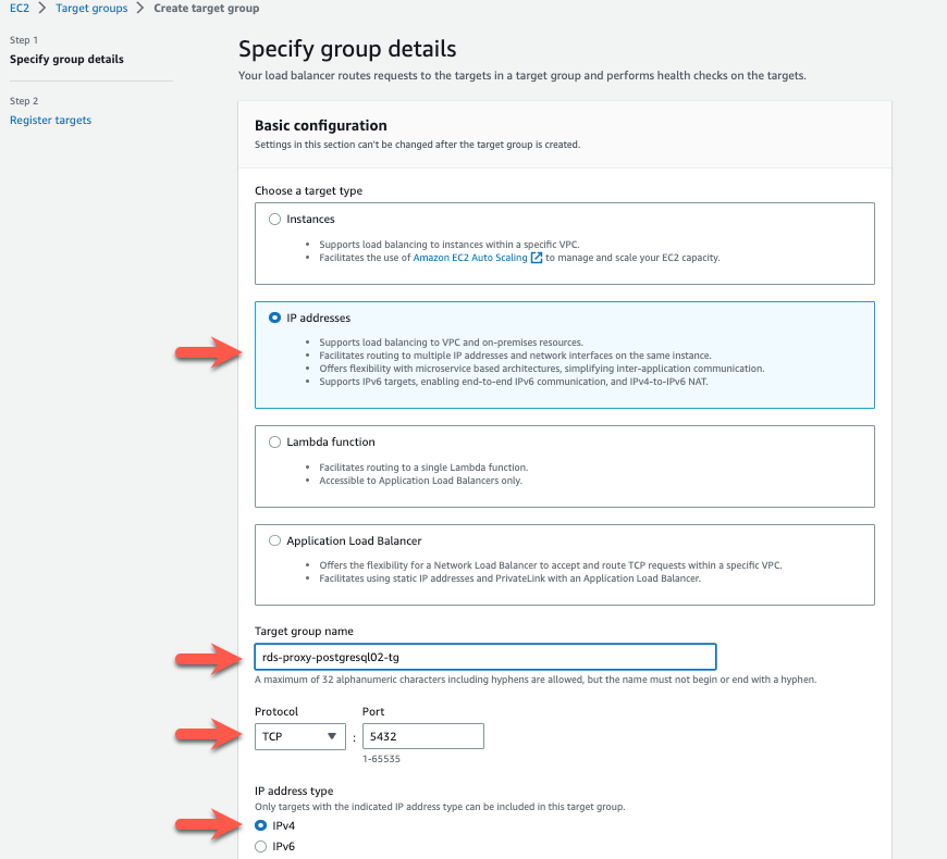 - For IPV4 addresses, enter your RDS Proxy IP addresses.
