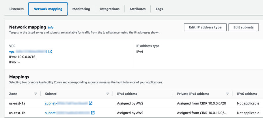 - On the Network mapping tab, note down the CIDR range for the load balancer. You will need this for next step.