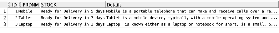 insert into demo_user.product_tbl values (i,t_prd[i],v_stock,DET_CLOB);