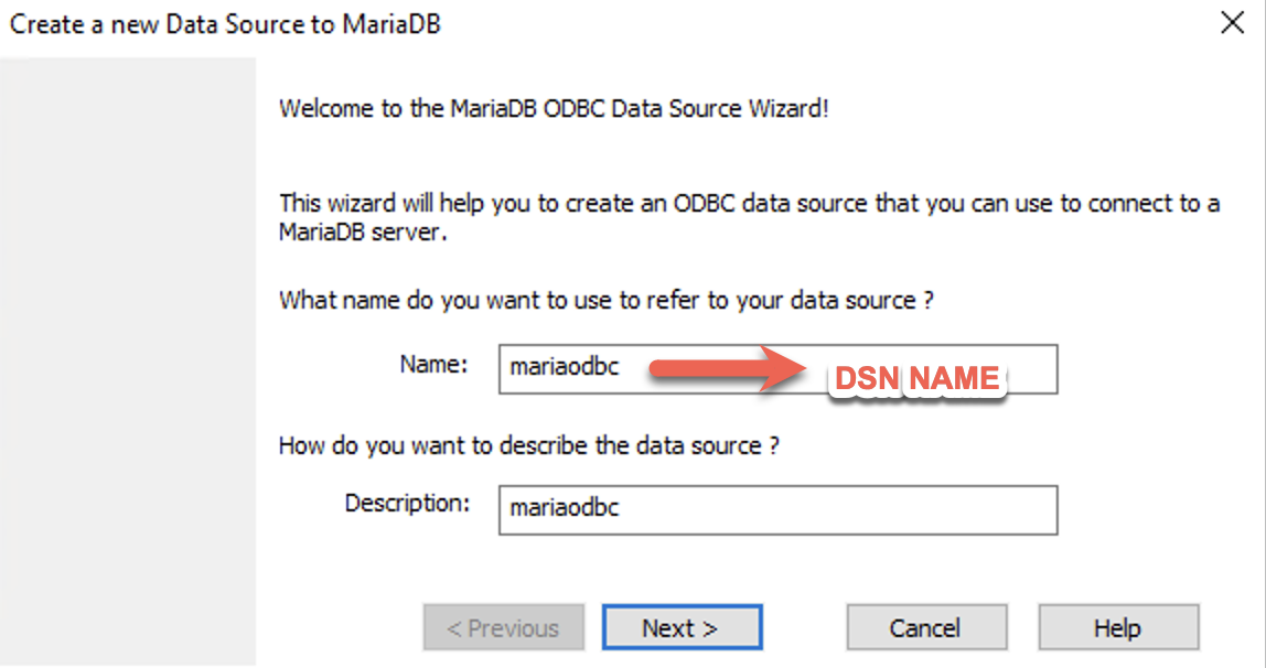 - Enter the DSN name for your data source.