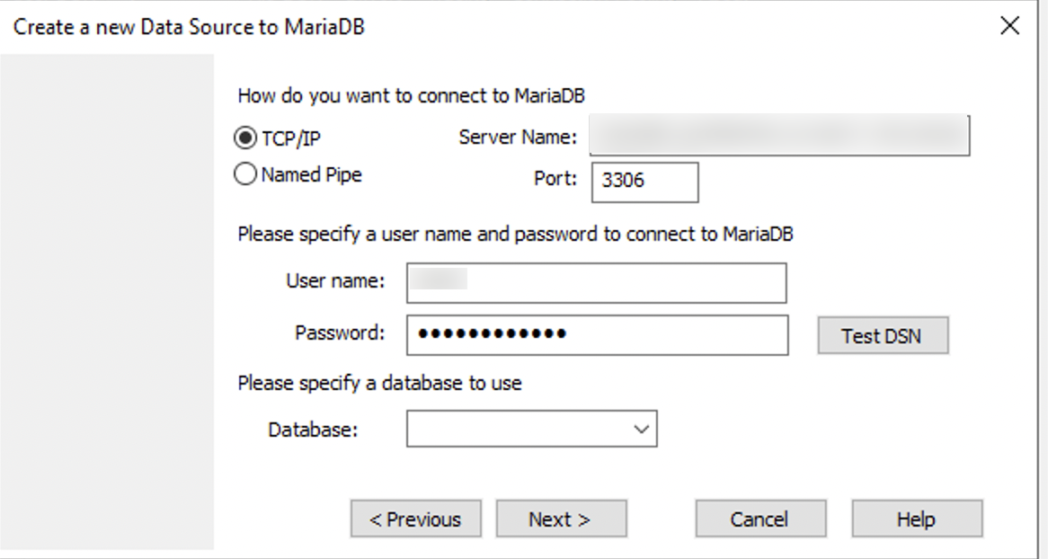 Next, we collect the MariaDB connector and ODBC data source configuration details.