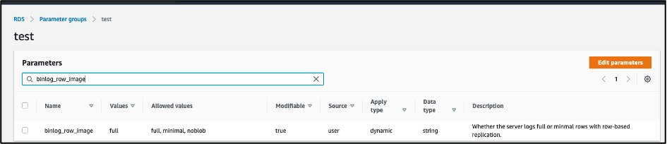 binlog_format = ROW). Enable automated backup for Amazon RDS for MySQL, Amazon RDS for MariaDB and setbinlog_format = ROWfor Amazon Aurora MySQL-Compatible Edition.