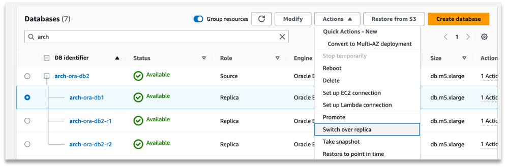 The architecture patterns and use cases discussed in this post can be applied to all deployment options for Oracle databases in AWS. We use the following in Amazon RDS for Oracle as pool databases to demonstrate the usage of Oracle GDS in AWS: