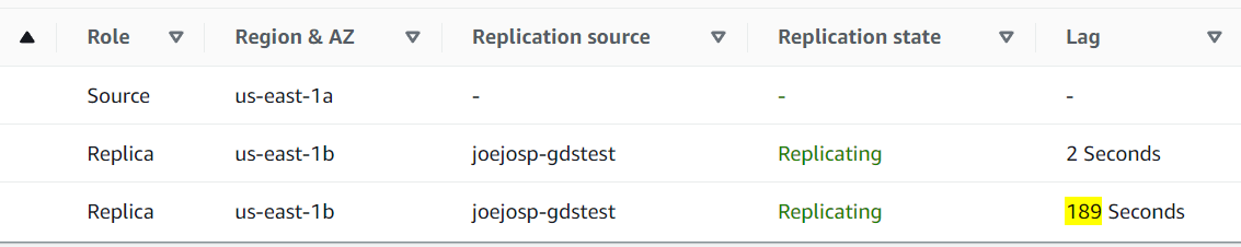 - oradb_r1(unique name ORADB_B) – RDS for Oracle read replica database