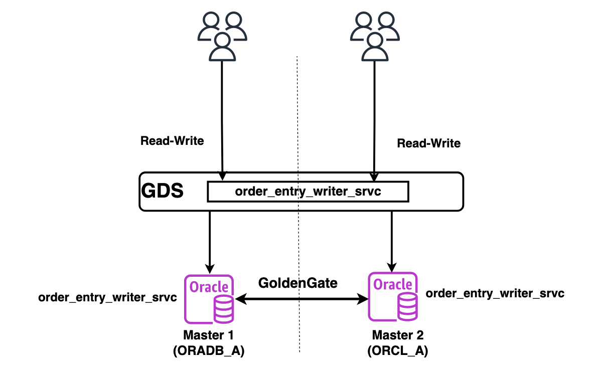 In this scenario, we create a global service called order_entry_writer_srvc, which will be configured to run on all the active databases in the setup. Client connections will be intelligently redirected to the appropriate database based on connect time or runtime load balancing, ensuring optimal performance and resource utilization.