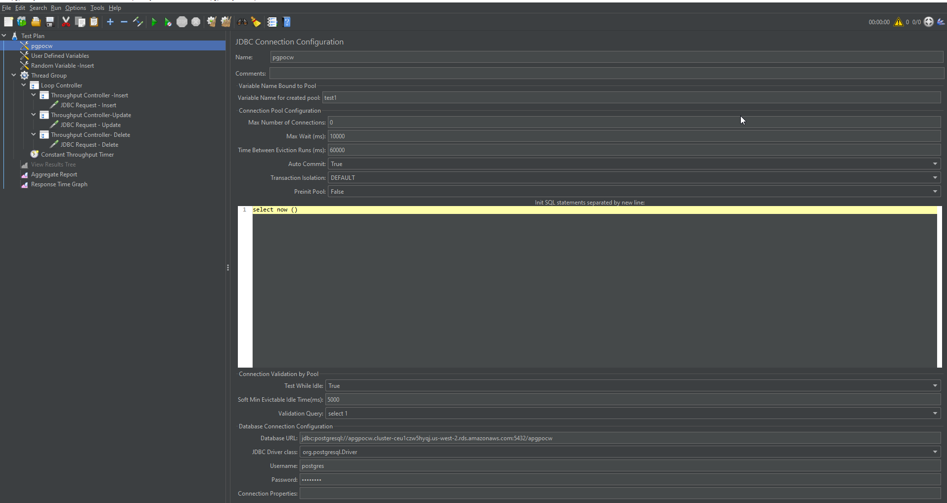 Apache JMeter is a Java-based open-source testing tool used for analyzing and measuring the performance of different software web applications and products. It supports a wide variety of applications, servers and protocols. Also, it is primarily used to run performance and load testing of web applications and databases. We focus on the replication performance, if you are looking for a post about JMeter with Amazon Aurora, refer to Configure a performance testing framework for Amazon Aurora PostgreSQL