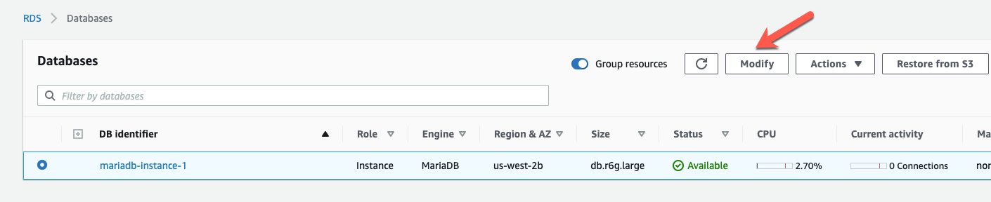 - An EC2 instance to log into your RDS for MariaDB instance.