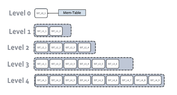 MyRocks uses an LSM data structure format to store data, as shown in the following diagram (source).