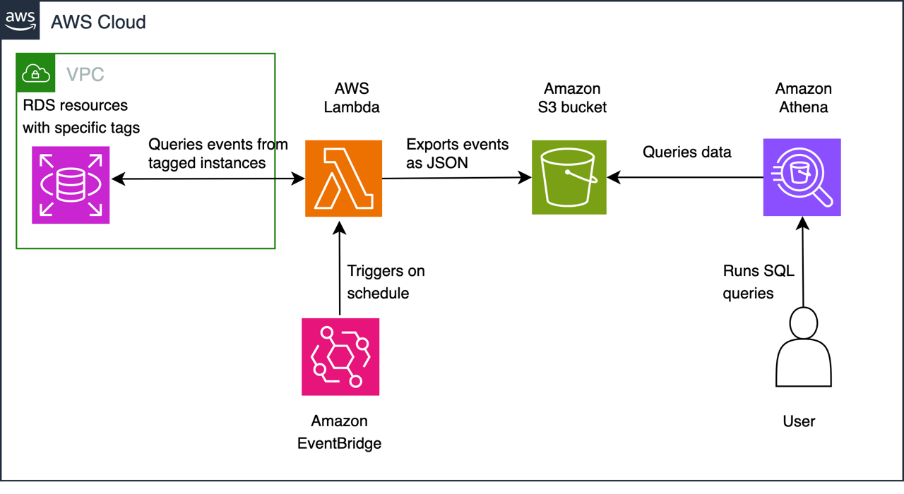 Database administrators and operations teams often need to analyze historical events for compliance, troubleshooting, and operational insights. Amazon Relational Database Service (Amazon RDS) and Amazon Aurora MySQL-Compatible and PostgreSQL-Compatible Edition generate important events that provide insights into database operations, including backup status, configuration changes, security updates, and maintenance notifications. However, these events are only retained for 14 days. In this post, we show you how to implement an automated solution for archiving Amazon RDS events to Amazon Simple Storage Service (Amazon S3). We also discuss how to analyze the events with Amazon Athena which helps enable proactive database management, helps maintain security and compliance, and provides valuable insights for capacity planning and troubleshooting.