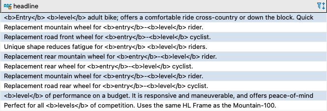 This is similar to the earlier use case using the CONTAINS predicate, except that the check is performed using the OR operator. In the following sample query, the predicate checks for “entry,” “level,” or both: