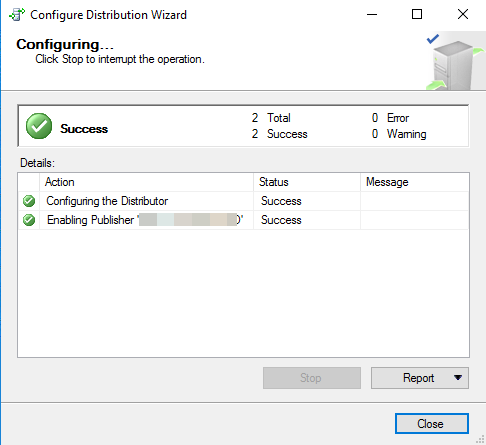 You first need to configure the source database for ongoing replication. For instructions, refer to Setting up ongoing replication using the sysadmin role with self-managed SQL Server. To create the distributor in the source, complete the following steps: