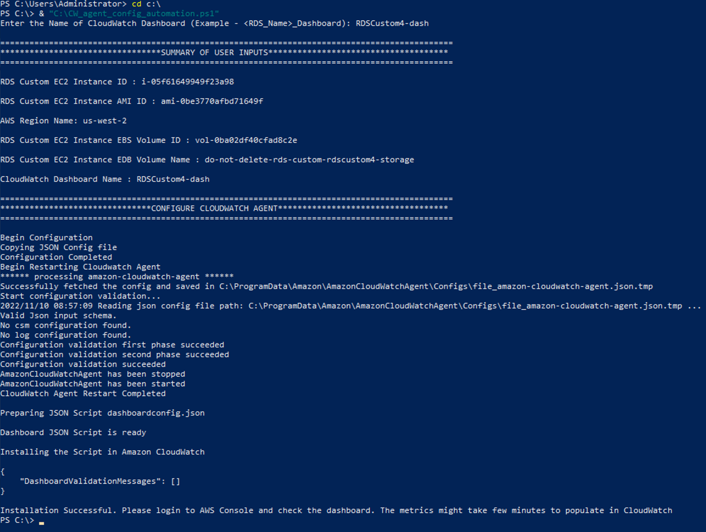 Note that in the case of an EC2 instance class modification or detection of an unhealthy EC2 host, Amazon RDS replaces the underlying EC2 instance. This action removes the CloudWatch configuration files (cw-agent.json, dashboardconfig.json, CW_agent_config_automation.ps1) and the CloudWatch configuration that was performed.