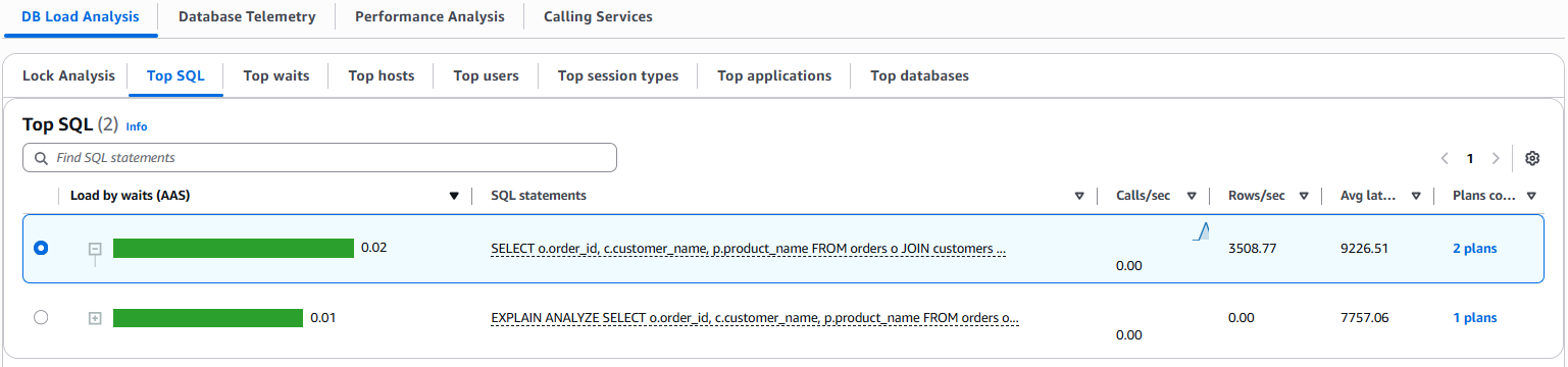 To follow along with this post, some additional configuration is required. Refer the prerequisites in Analyzing execution plans with CloudWatch Database Insights for detailed information.