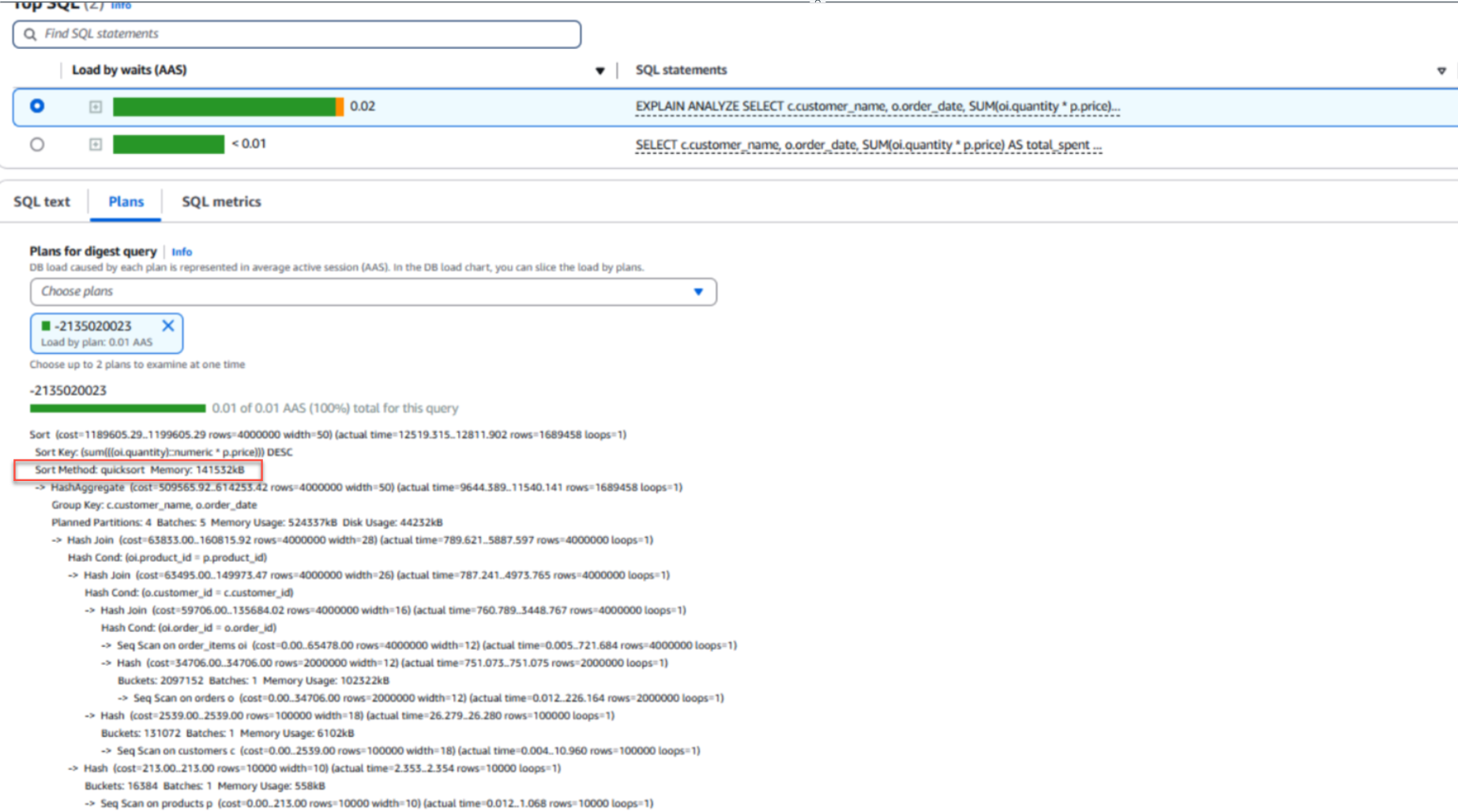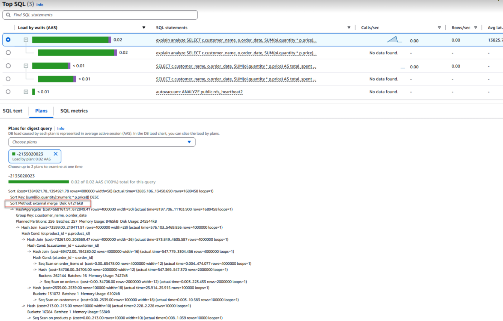 Using CloudWatch Database Insights simplified the optimization process by providing clear visualization of query execution patterns, which helped us identify the work_mem parameter as the root cause.