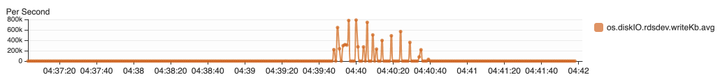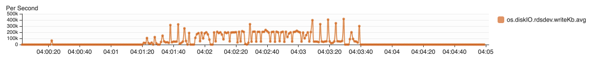 Running the bulk loading benchmark with the baseline configuration again revealed a large average queue length, indicating that the operation is constrained by the IOPS capacity of the EBS volume.