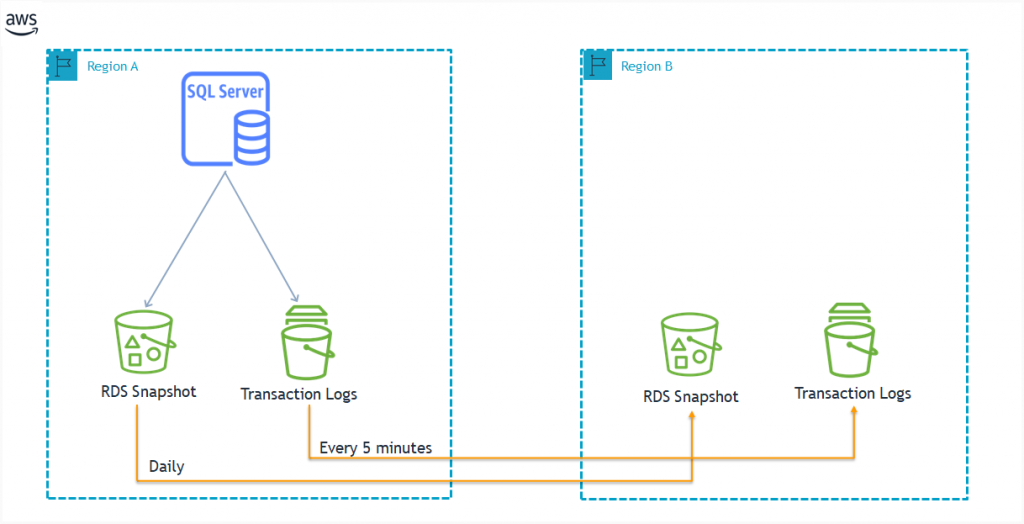 Managed disaster recovery with Amazon RDS for SQL Server using cross-Region automated backups