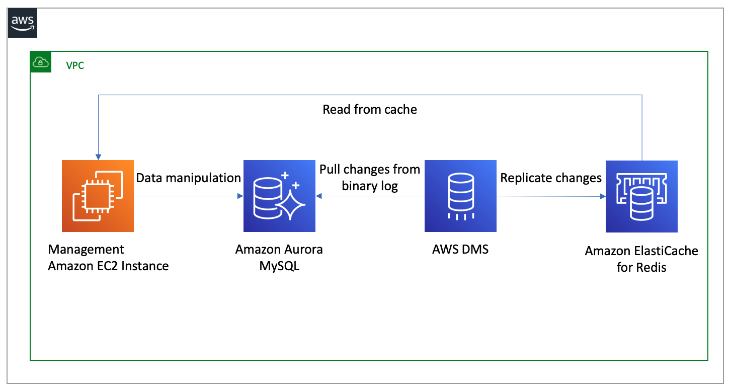 - An ElastiCache for Redis cluster, which receives changes made to your source database