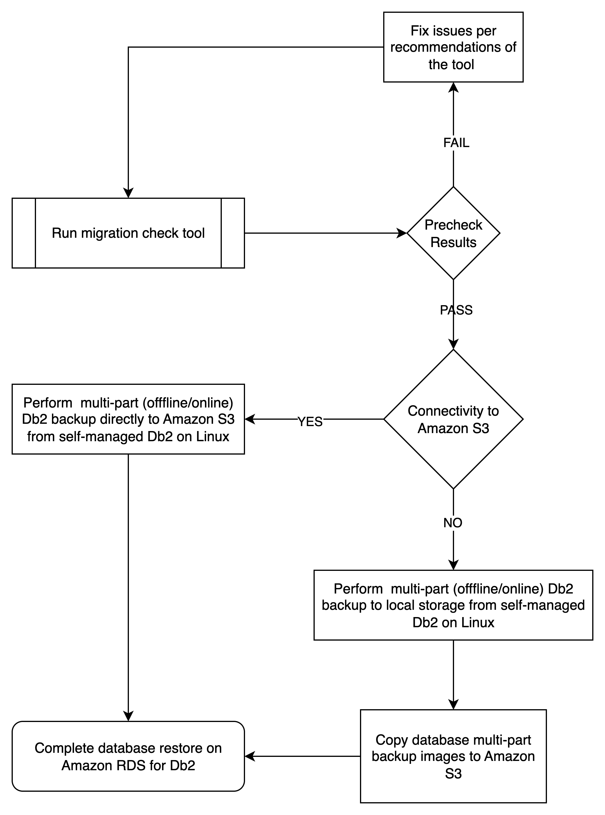 This proactive approach reduces failures and provides a smooth transition to Amazon RDS for Db2. For step-by-step guidance on migrating your self-managed Db2 databases from Linux to Amazon RDS for Db2, see Migrating from Linux to Linux for Amazon RDS for Db2.