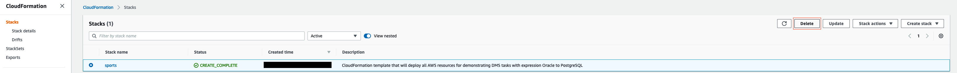 - On the AWS CloudFormation console, create a stack with the CloudFormation template dms-template.yaml