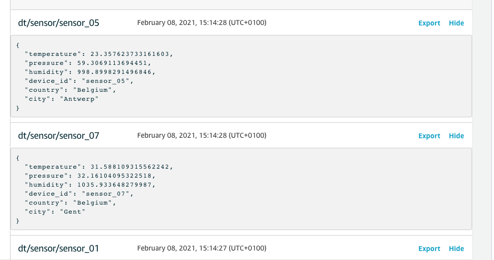 - The AWS IoT Core simulated data