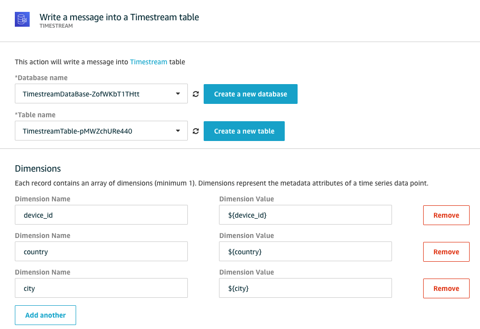 Configure the Timestream rule action