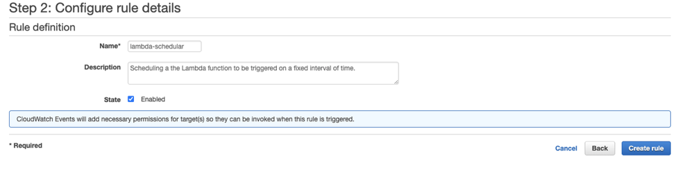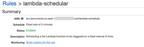 You have now scheduled your Lambda function, and it can be viewed in the Lambda console.