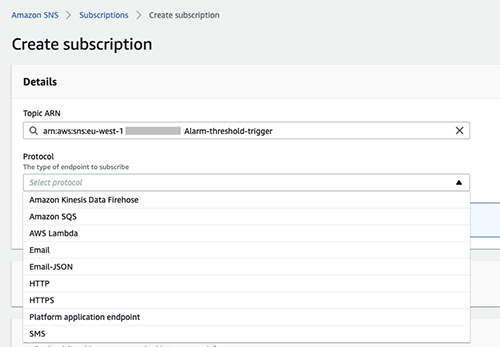 After this step you can create a SNS topic and subscribe to it.