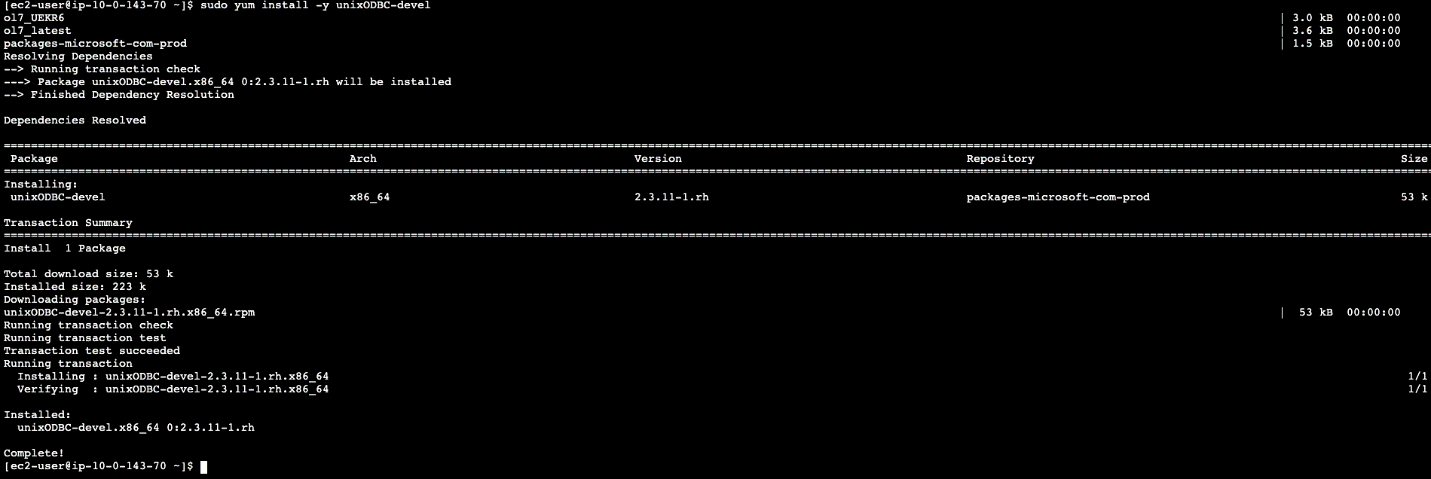 - Install the UnixODBC development package which includes necessary files and libraries for applications that interact with databases using ODBC.