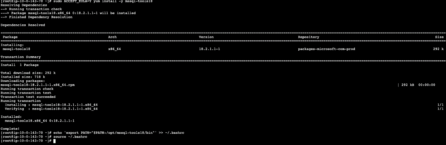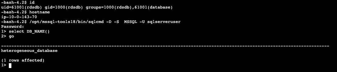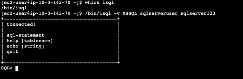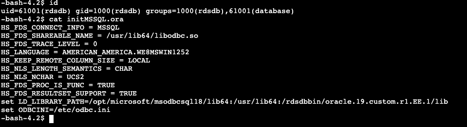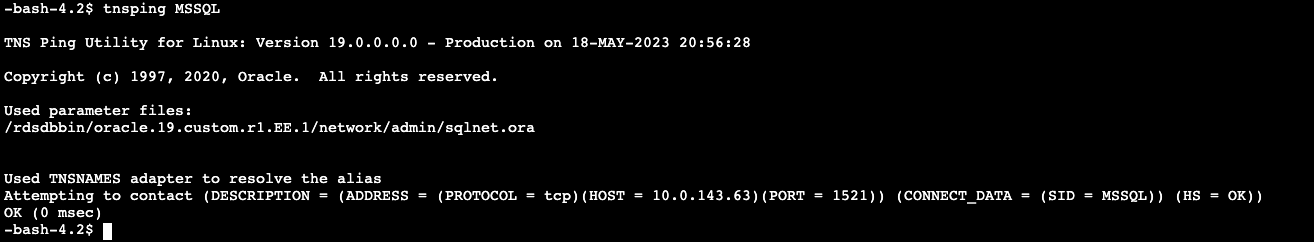 - Test the connection between the instances using sqlcmd or isql (which comes pre-installed on the RDS Custom for Oracle instance)