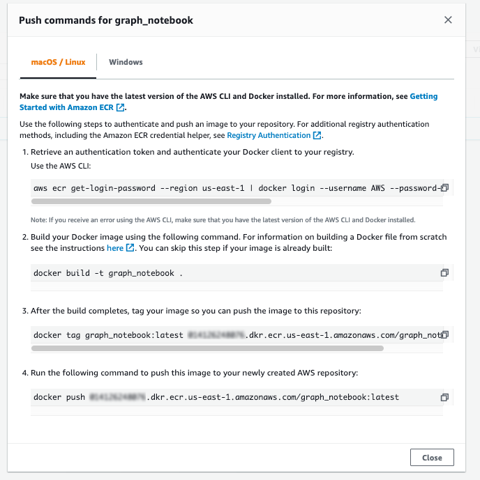 - Inside the downloaded directory, run the preceding commands to build and push the Docker image to Amazon ECR.